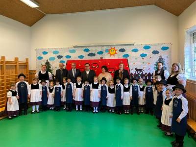 Neben offiziellen Terminen bspw. mit Bürgermeisterin Ilona Szücsné Posztovics, bei denen unter anderem aus allen Partnerstädten von den Entwicklungen der letzten drei Jahren berichtet wurde, kam auch der gesellige Austausch nicht zu kurz. Besonders beeindruckend war der Besuch im deutschen Kindergarten und der deutschen Schule im Stadtteil Felsőgalla (Obergalla) von Tatabanya. Dort wird von Klein auf auch Sprache, Kultur und Brauchtum der Ungarndeutschen gepflegt. Neben allen großen europäischen Themen und Herausforderungen unserer Zeit, die wir (wieder?) gemeinsam anpacken müssen, müssen wir unbedingt nach Corona den Bereich der Bildung und des kulturellen Austauschs wieder aufleben lassen. Wer das gemeinsame Europa konkret erlebt, geht bewusster mit dem Friedensprojekt Europa um. Sehr zu denken gab uns auch der Bericht aus der ukrainischen Partnerstadt von Tatabanya Pyjterfolwo. Selbst ganz im Westen der Ukraine ist Schulunterricht und Kinderbetreuung nur dort erlaubt, wo es Schutzräume gibt. Wie traurig. Hoffentlich kommt bald der Frieden. Einen herzlichen Dank an alle, die uns den Besuch ermöglicht haben und die uns geholfen und begleitet haben. Danke - Köszönöm!