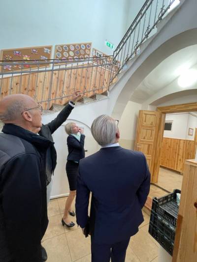 Neben offiziellen Terminen bspw. mit Bürgermeisterin Ilona Szücsné Posztovics, bei denen unter anderem aus allen Partnerstädten von den Entwicklungen der letzten drei Jahren berichtet wurde, kam auch der gesellige Austausch nicht zu kurz. Besonders beeindruckend war der Besuch im deutschen Kindergarten und der deutschen Schule im Stadtteil Felsőgalla (Obergalla) von Tatabanya. Dort wird von Klein auf auch Sprache, Kultur und Brauchtum der Ungarndeutschen gepflegt. Neben allen großen europäischen Themen und Herausforderungen unserer Zeit, die wir (wieder?) gemeinsam anpacken müssen, müssen wir unbedingt nach Corona den Bereich der Bildung und des kulturellen Austauschs wieder aufleben lassen. Wer das gemeinsame Europa konkret erlebt, geht bewusster mit dem Friedensprojekt Europa um. Sehr zu denken gab uns auch der Bericht aus der ukrainischen Partnerstadt von Tatabanya Pyjterfolwo. Selbst ganz im Westen der Ukraine ist Schulunterricht und Kinderbetreuung nur dort erlaubt, wo es Schutzräume gibt. Wie traurig. Hoffentlich kommt bald der Frieden. Einen herzlichen Dank an alle, die uns den Besuch ermöglicht haben und die uns geholfen und begleitet haben. Danke - Köszönöm!